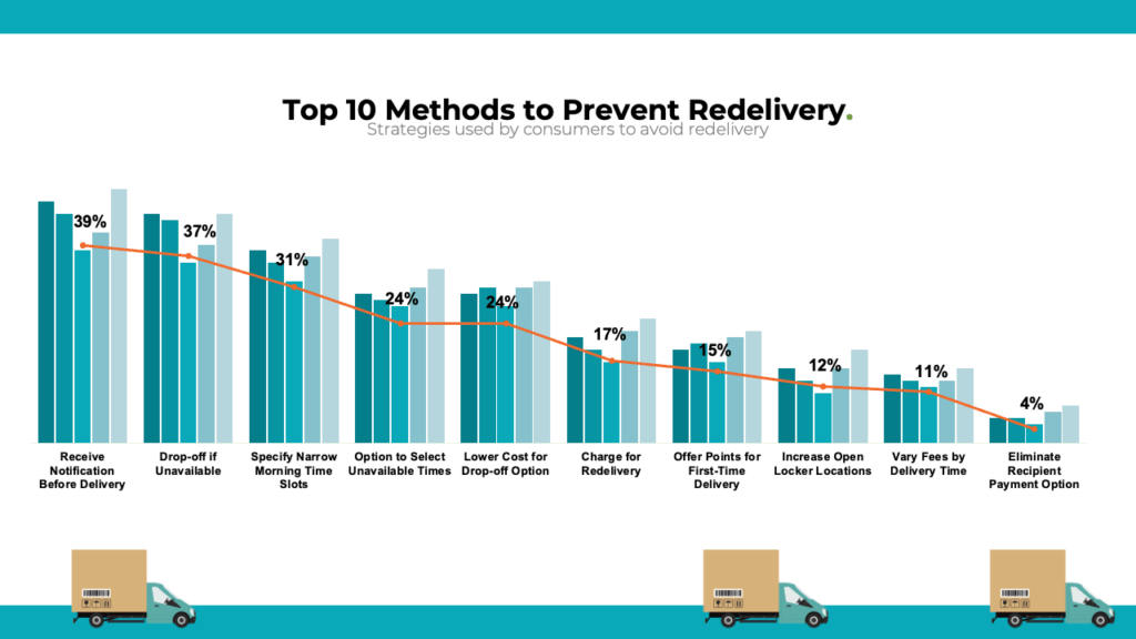 Implication for Brands: Incorporating technology to support real-time updates, predictive delivery times, and flexible scheduling could cater to these preferences and reduce the frequency of redelivery.